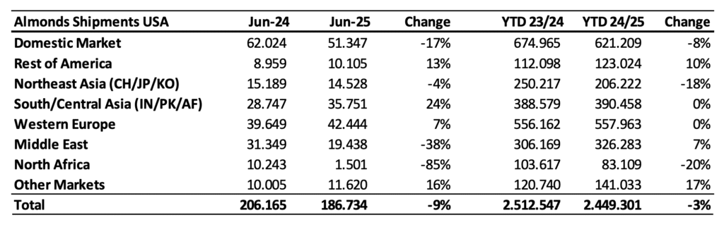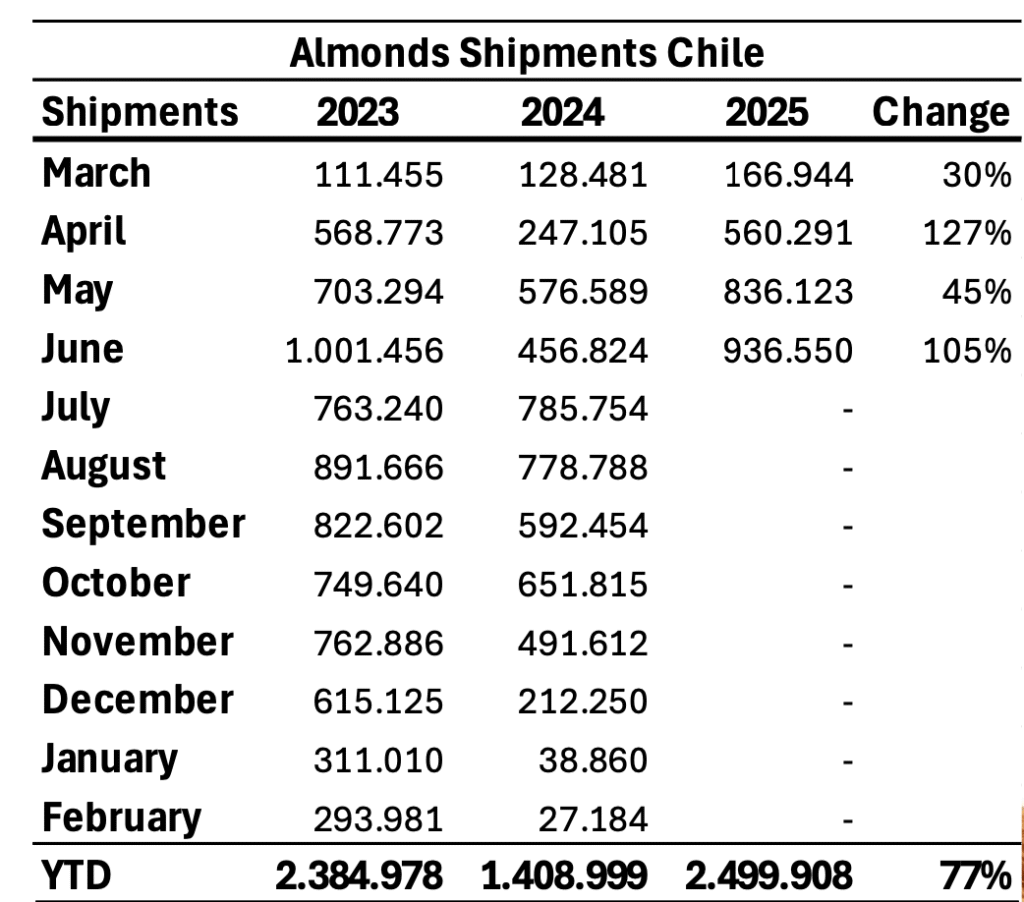 Fuente: Reporte de Almendras Junio 2025 Baika basado en información del Almond Board of California