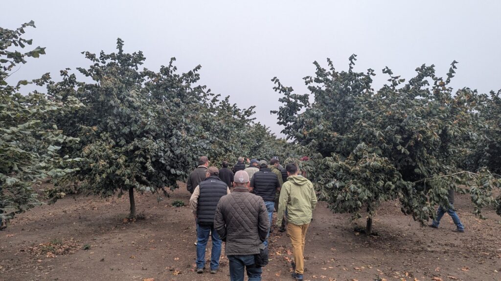 La gira continuó hacia el norte, en el estado de Oregón, donde el grupo visitó huertos de avellanos y líneas de proceso de diferentes escalas productivas. Además, recorrieron la Universidad Estatal de Oregón (OSU), institución referente en investigación y mejoramiento genético del avellano europeo. En cada parada, los participantes pudieron compartir experiencias con productores locales, intercambiando visiones sobre manejo, eficiencia y sustentabilidad en el cultivo.
