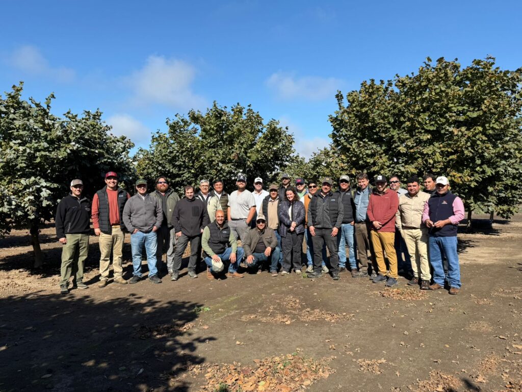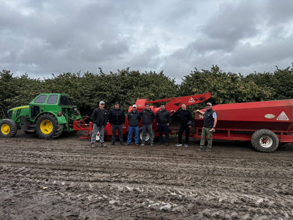 Durante su paso por California, el grupo visitó distintas zonas productivas en Sacramento, donde presenciaron cosechas de nueces y almendras realizadas por prestadores de servicios especializados. En estas faenas, observaron cómo los equipos de cosecha alcanzan rendimientos diarios de hasta 20 hectáreas en promedio en un solo turno de 12 horas, gracias a una organización impecable y un uso continuo de la maquinaria. “La gran diferencia está en la utilización del carro con conveyor. Esa pieza es clave para mantener la cosecha en movimiento: mientras se recoge la fruta, al mismo tiempo se descarga, y la cosechadora prácticamente no se detiene, salvo para cargar combustible”, detalla Lira.