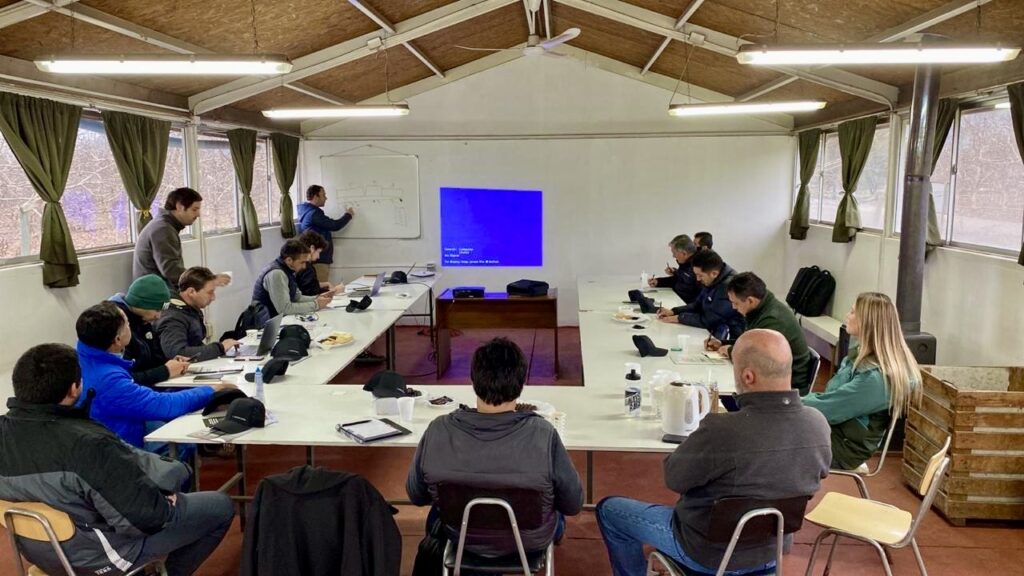El equipo técnico de Sumitomo Chemical, junto con los representantes del campo de Superfruit, se reunieron para intercambiar experiencias y aprender sobre las últimas innovaciones en el manejo de nogales. Uno de los temas centrales del día fue la poda, una práctica fundamental para mantener la salud y productividad de los árboles. Se discutieron diferentes técnicas y estrategias para optimizar este proceso, asegurando así una producción de alta calidad.